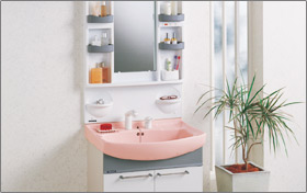 コンパクトサイズにたっぷり機能。使い勝手のよい洗面台は1日のはじまりを楽しくさせてくれます。システム洗面化粧台も各種あります。